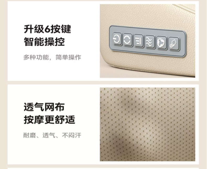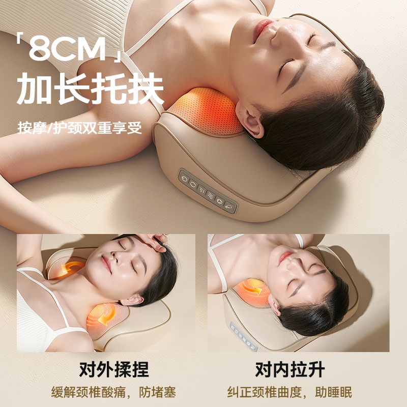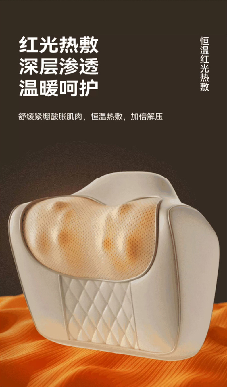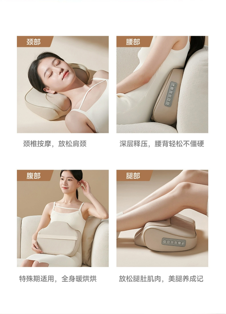 【旗舰米白色】插电使用+3档力度按摩+红光杀菌+温感热敷+20头正反揉捏+全身通用+仿真人揉捏