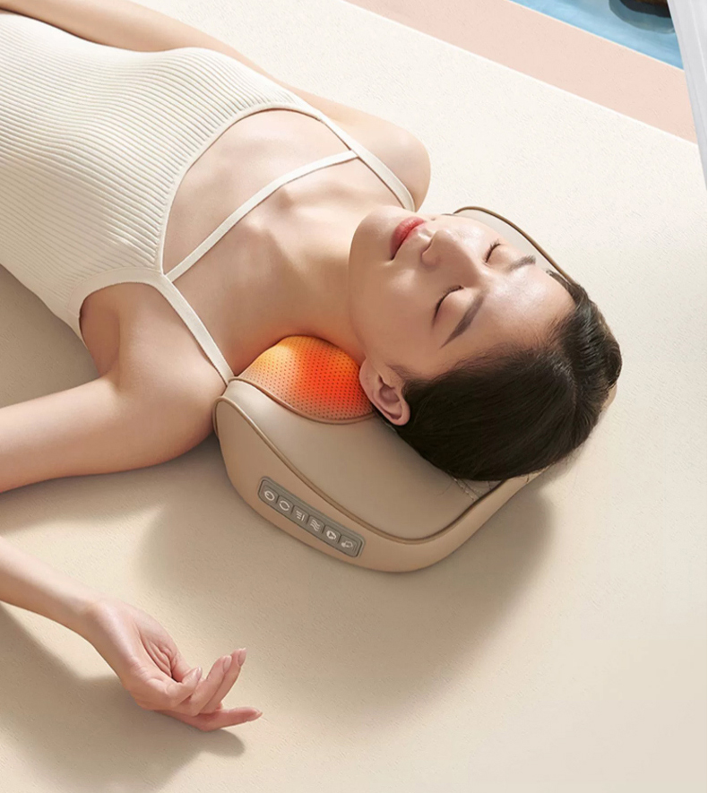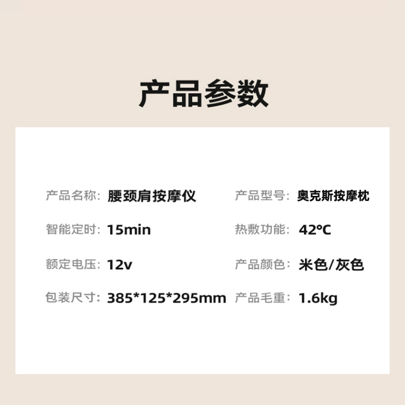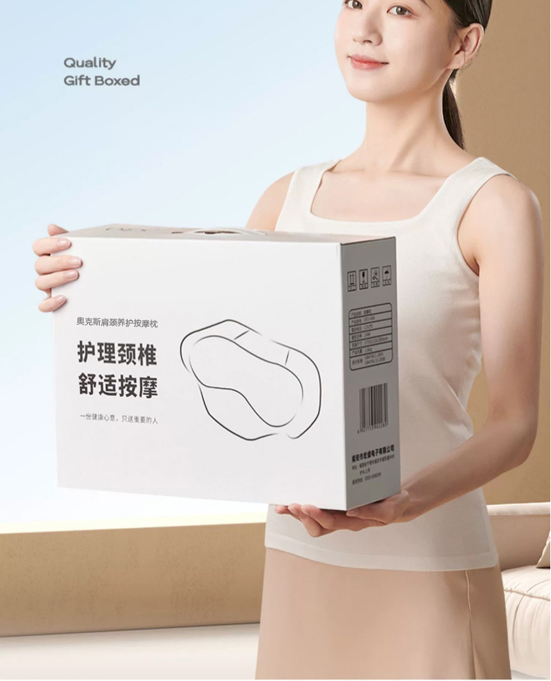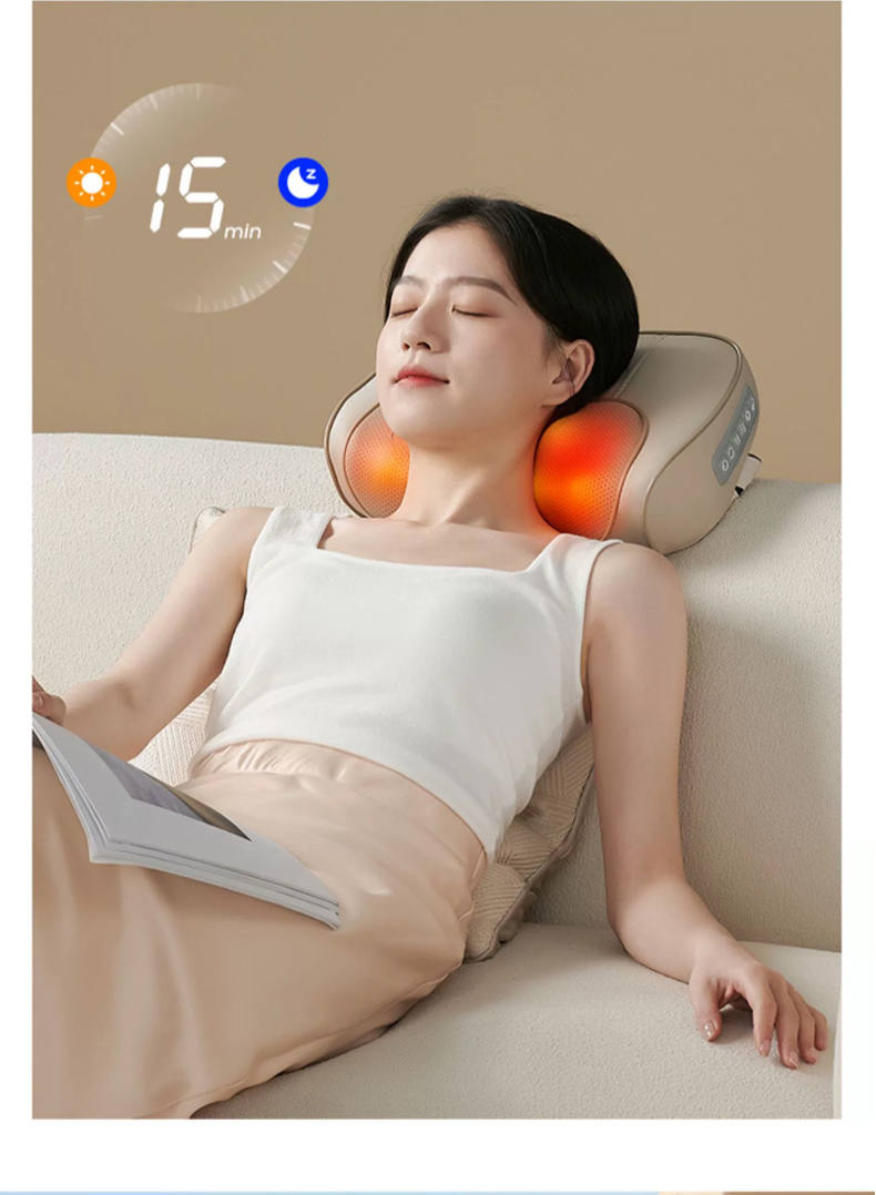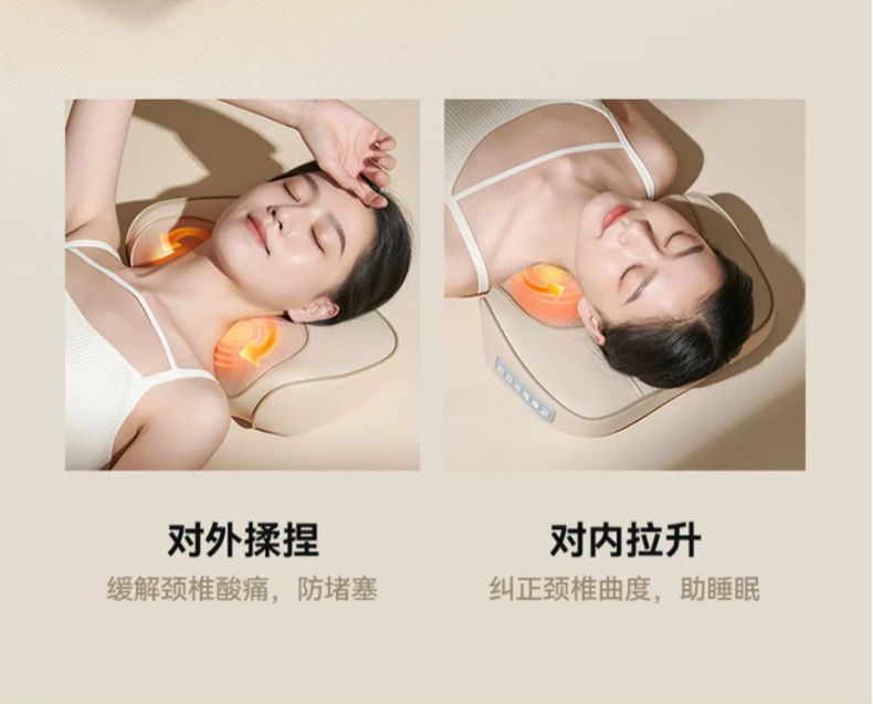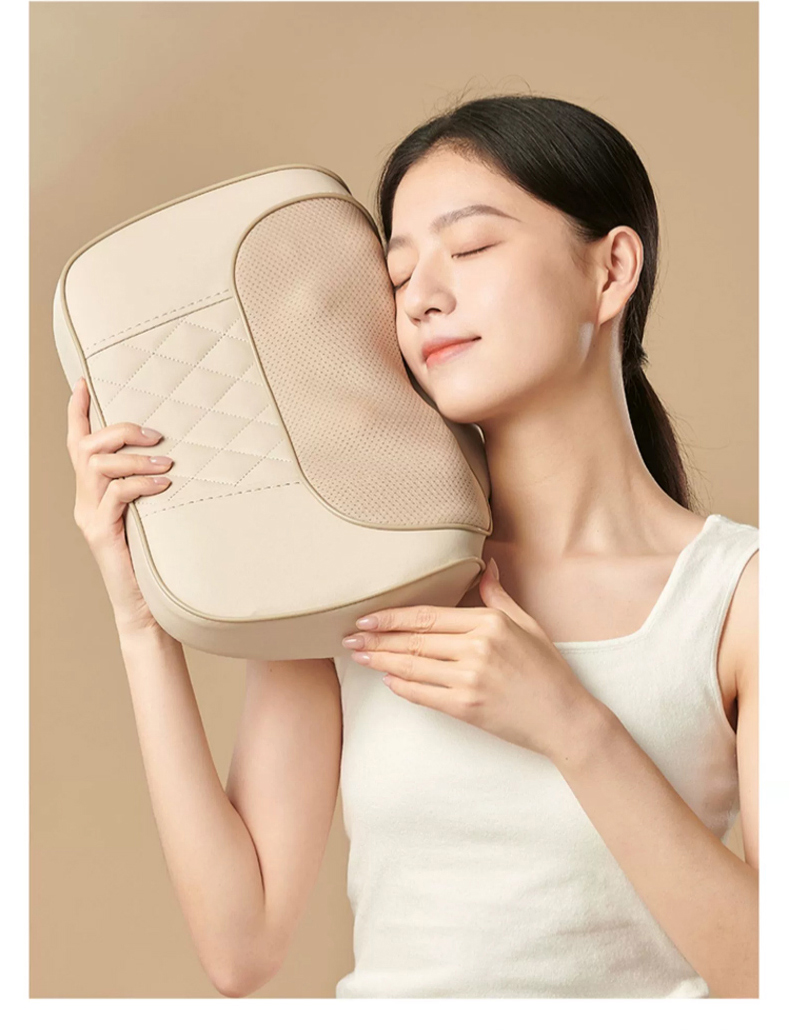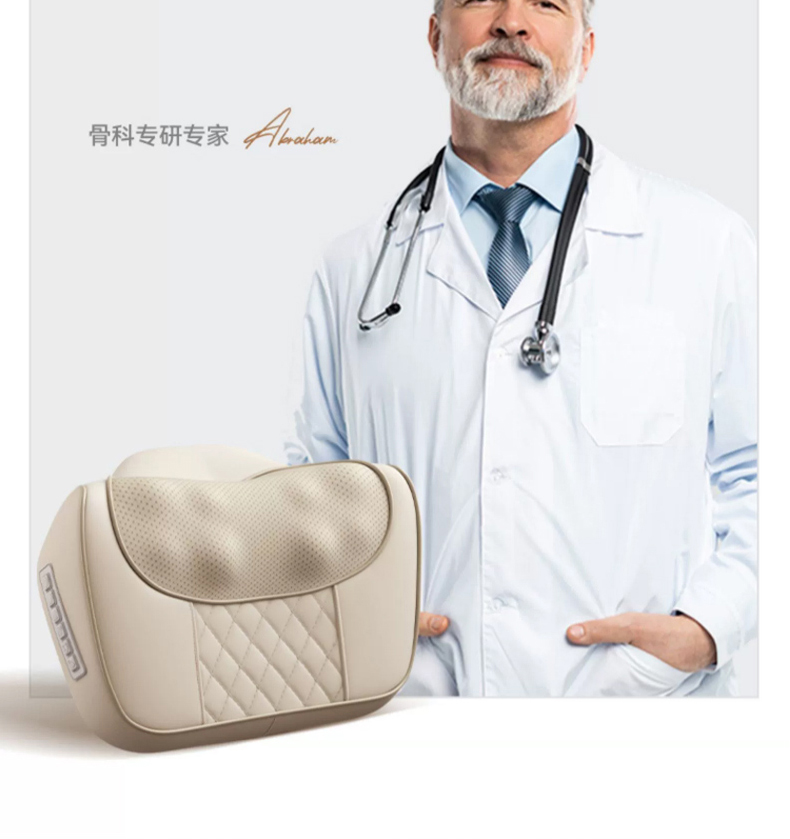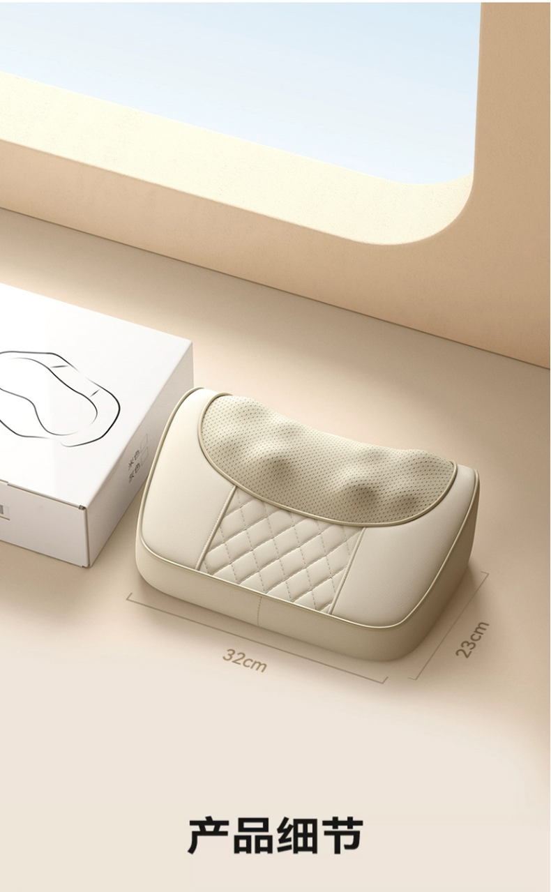 【全配米白色】精美礼盒+充电使用+20头正反柔捏+3档力度按摩+6键控制+3大模式+智能定时+红光辅热杀菌+持久续航