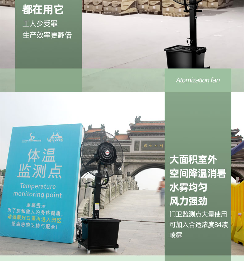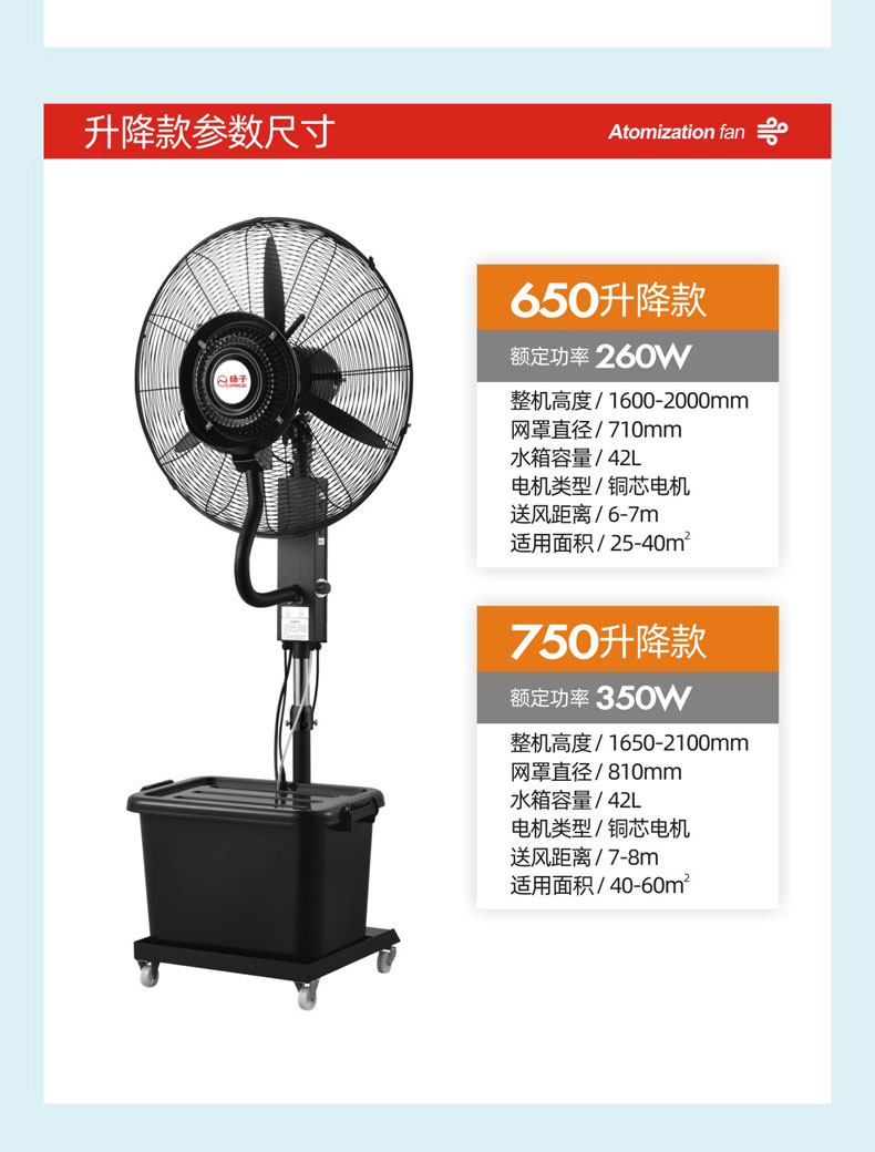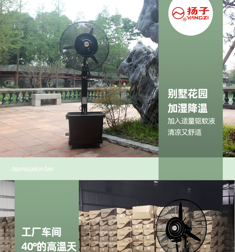 扬子工业喷雾风扇大功率商用降温水冷风机雾化制冷强力落地电风扇