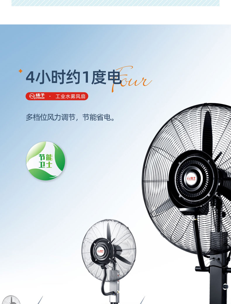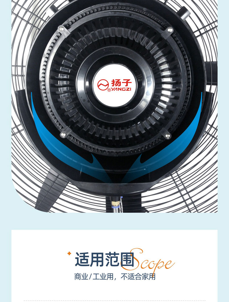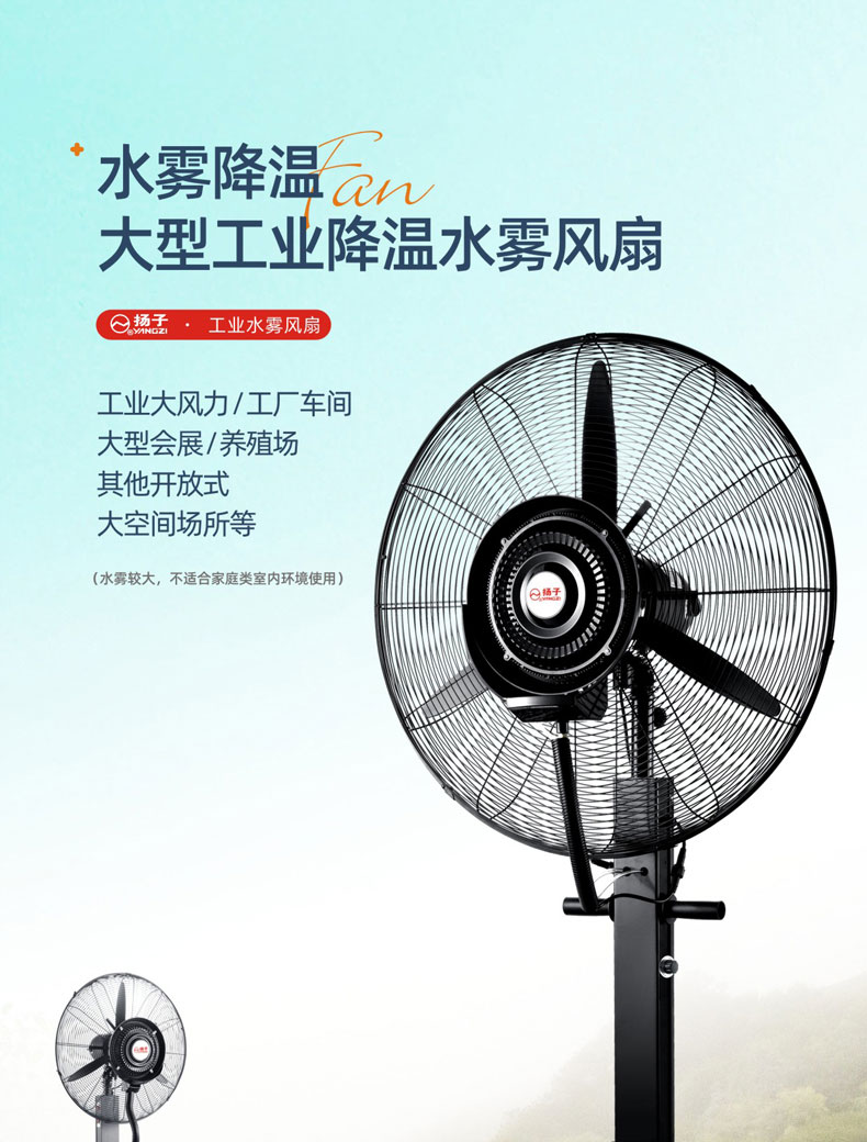 • 扬子工业喷雾风扇大功率商用降温水冷风机雾化制冷强力落地电风扇