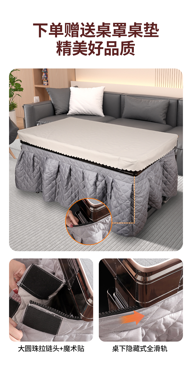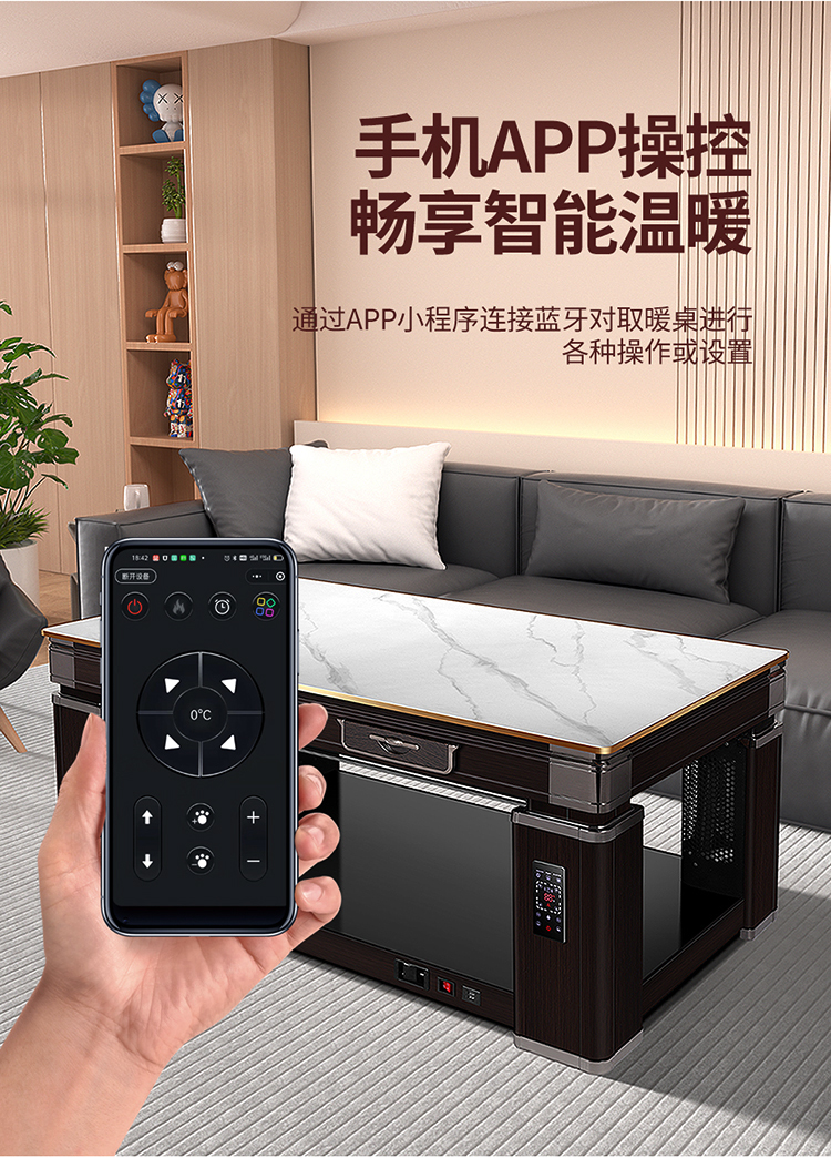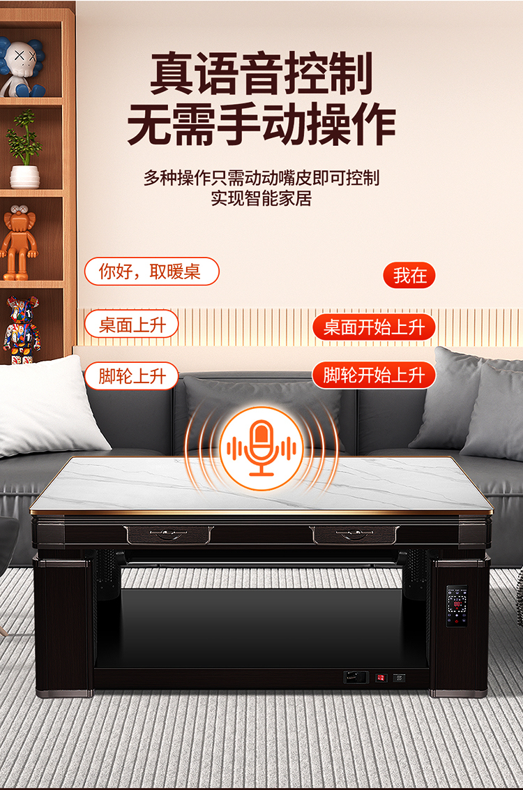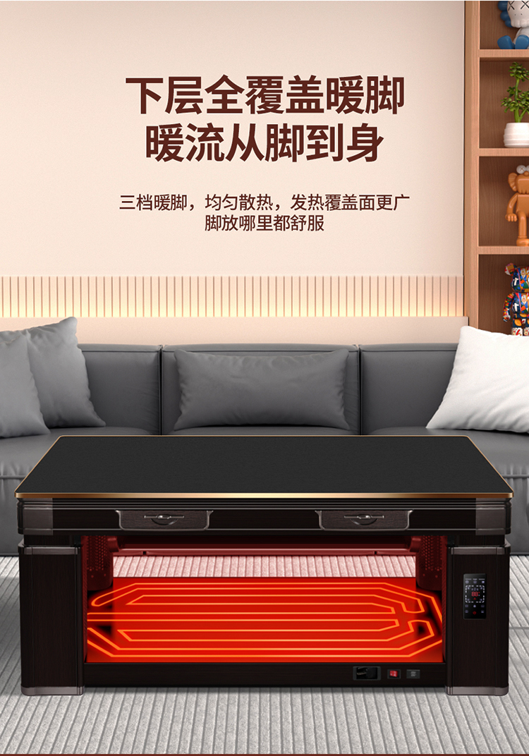 • 新款烤火桌子家用客厅语音升降烤火茶几电暖炉长方形取暖桌电暖桌