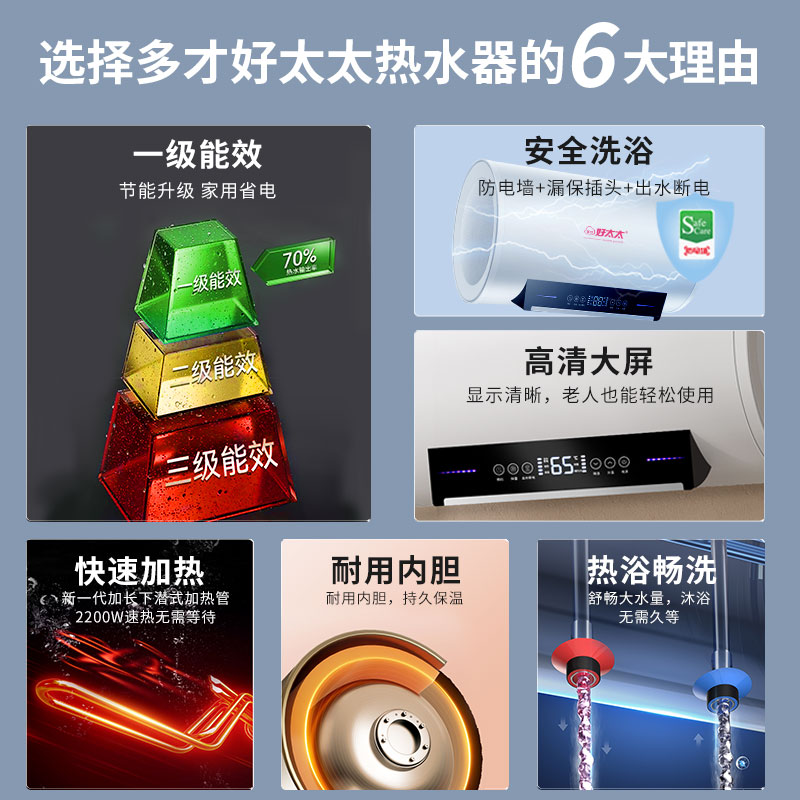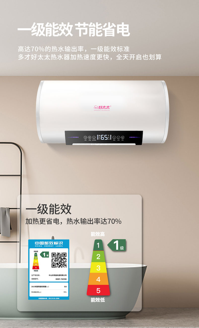 • 多才好太太热水器家用电热水器一级能效卫生间洗澡节能扁桶储水式
