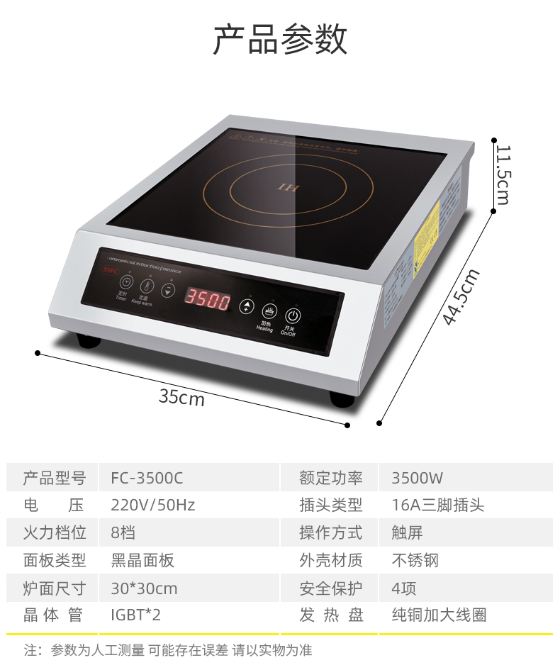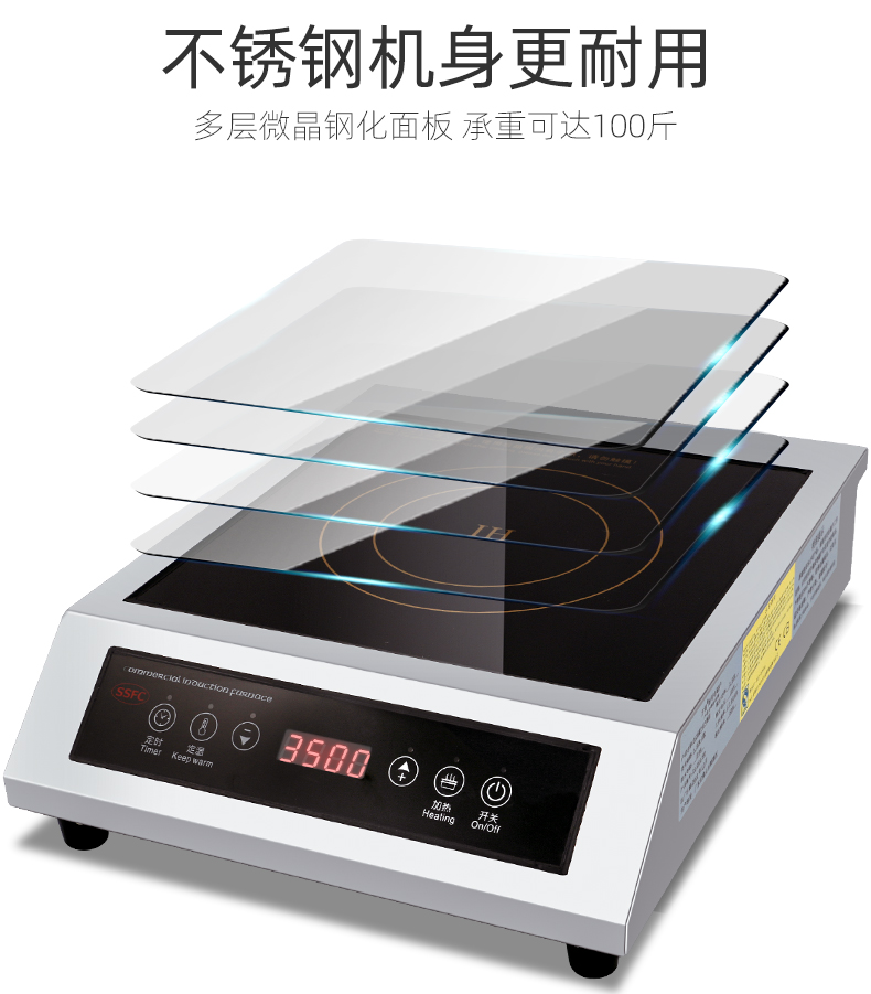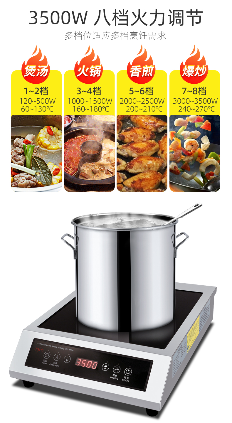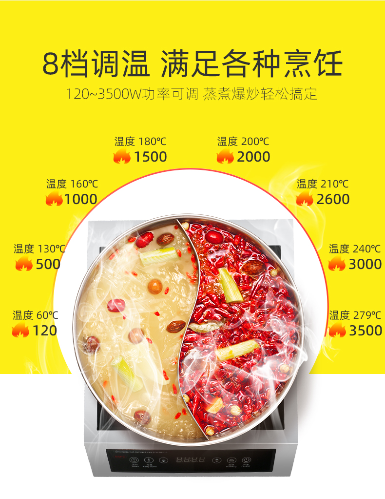 3500W凹面【不锈钢机身,送圆底炒锅】