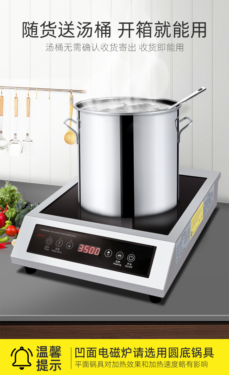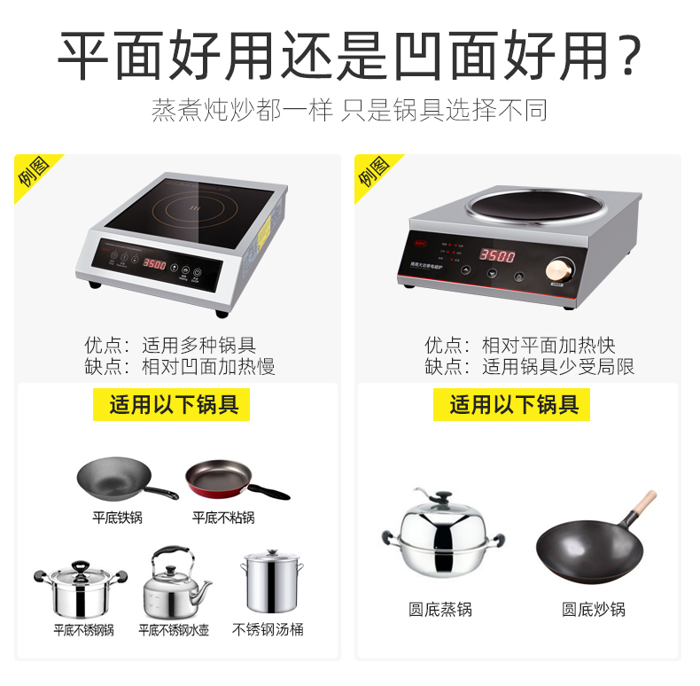 首页 > 电器产品 > 方厨大功率电磁炉商用凹面平底3500W5000w饭店专用不锈钢电炒炉