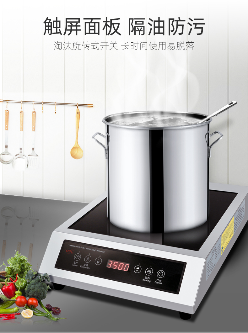 方厨大功率电磁炉商用凹面平底3500W5000w饭店专用不锈钢电炒炉