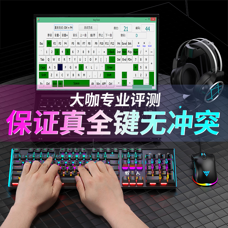 • 牧马人全家桶真机械键盘鼠标耳机套装电脑电竞游戏专用键鼠三件套