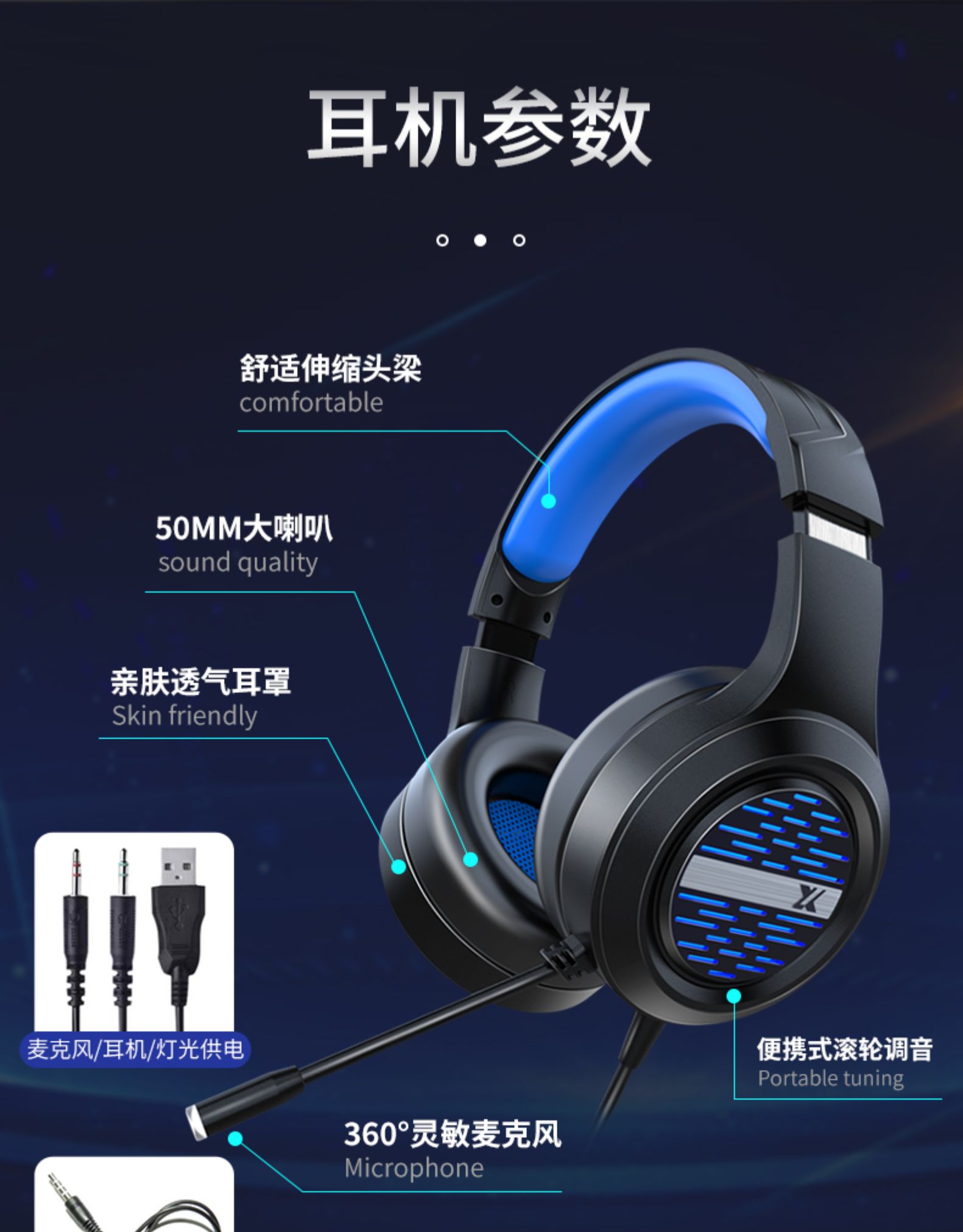 银白蓝光【青轴】+M2发光鼠标+立体声耳机