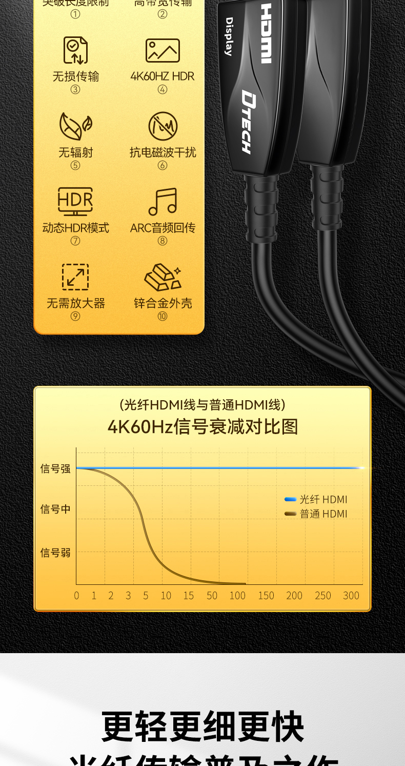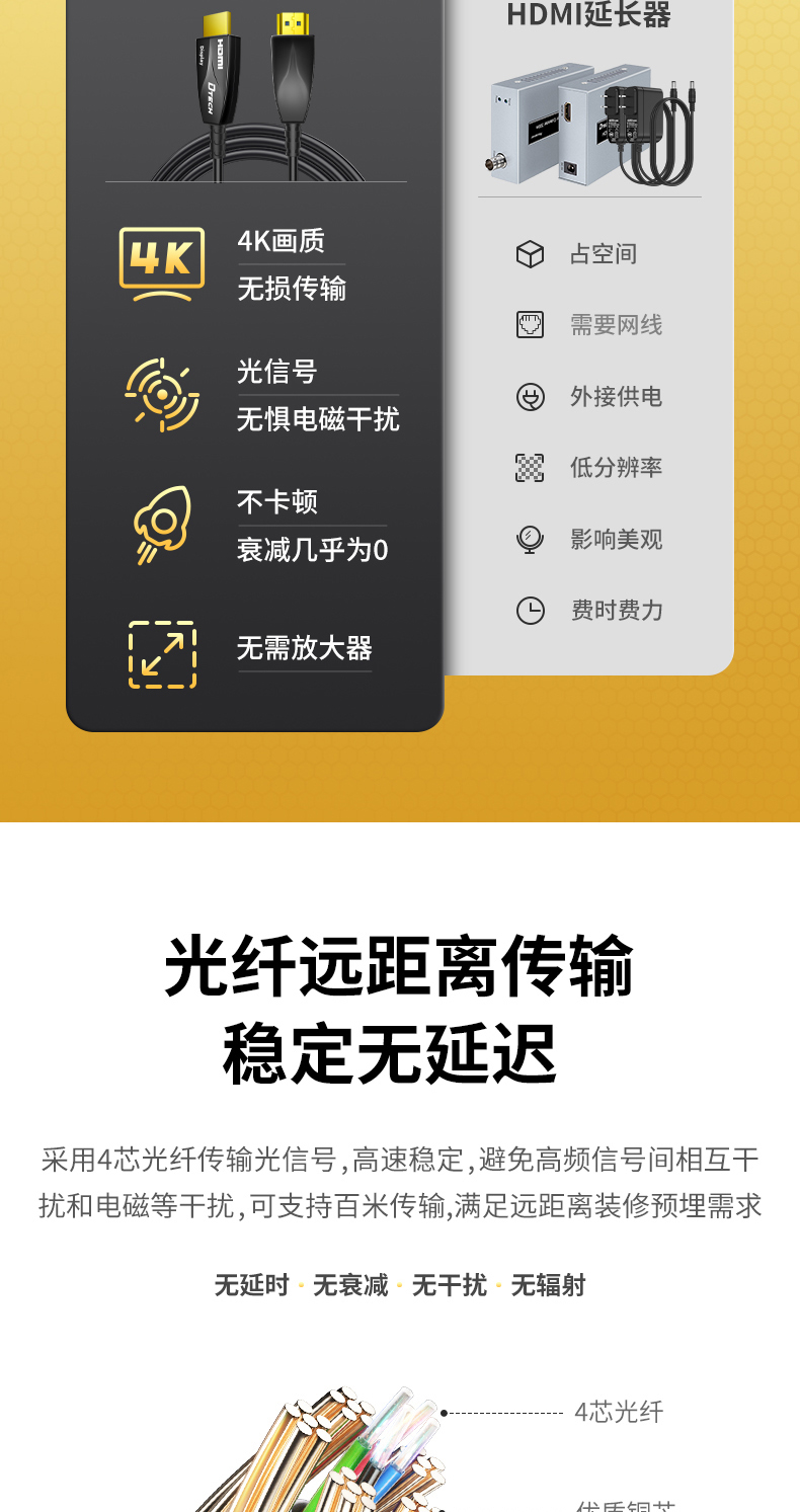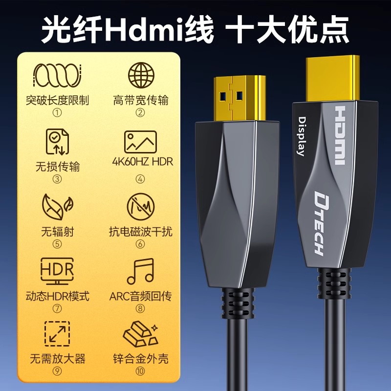 帝特hdmi线2.0高清线50米60米电视笔记本光纤数据线电脑与显示器