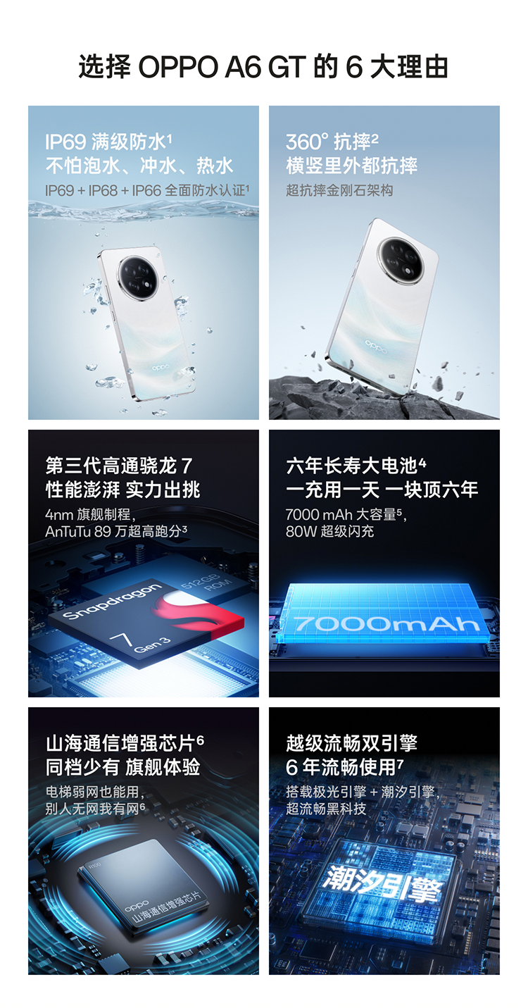 • 【新品上市】OPPO A6 GT 5G 手机耐用新一代强悍更流畅 IP69 满级防水学生智能手机政府补贴oppo官方旗舰店