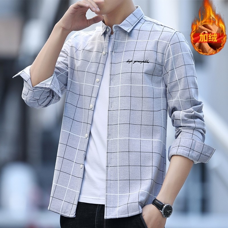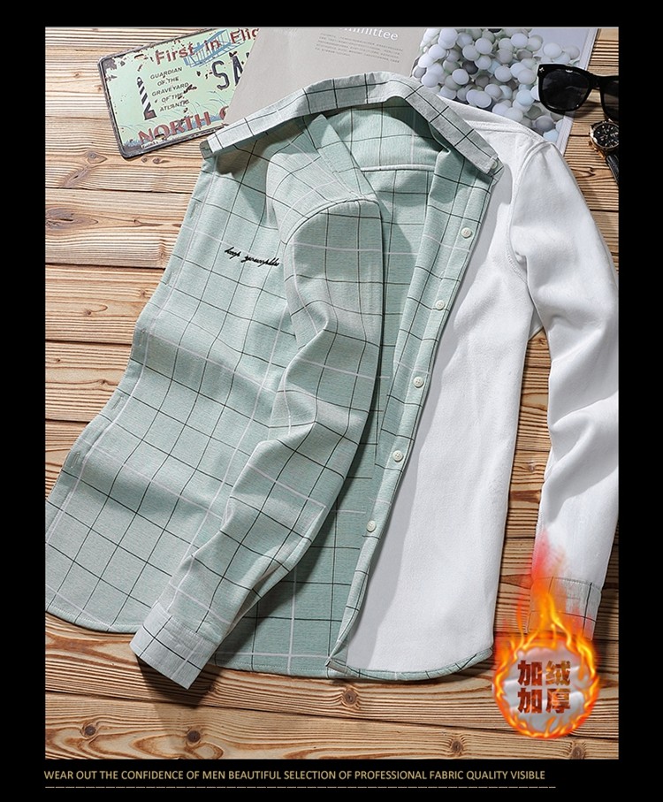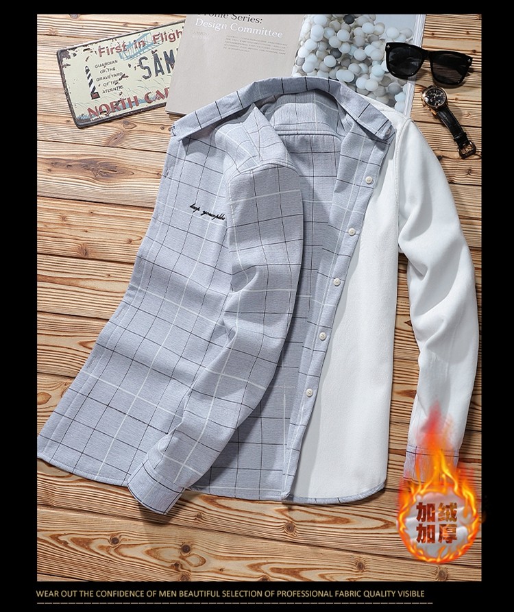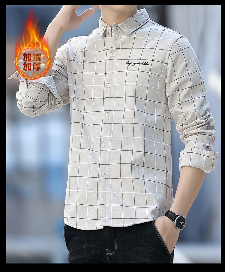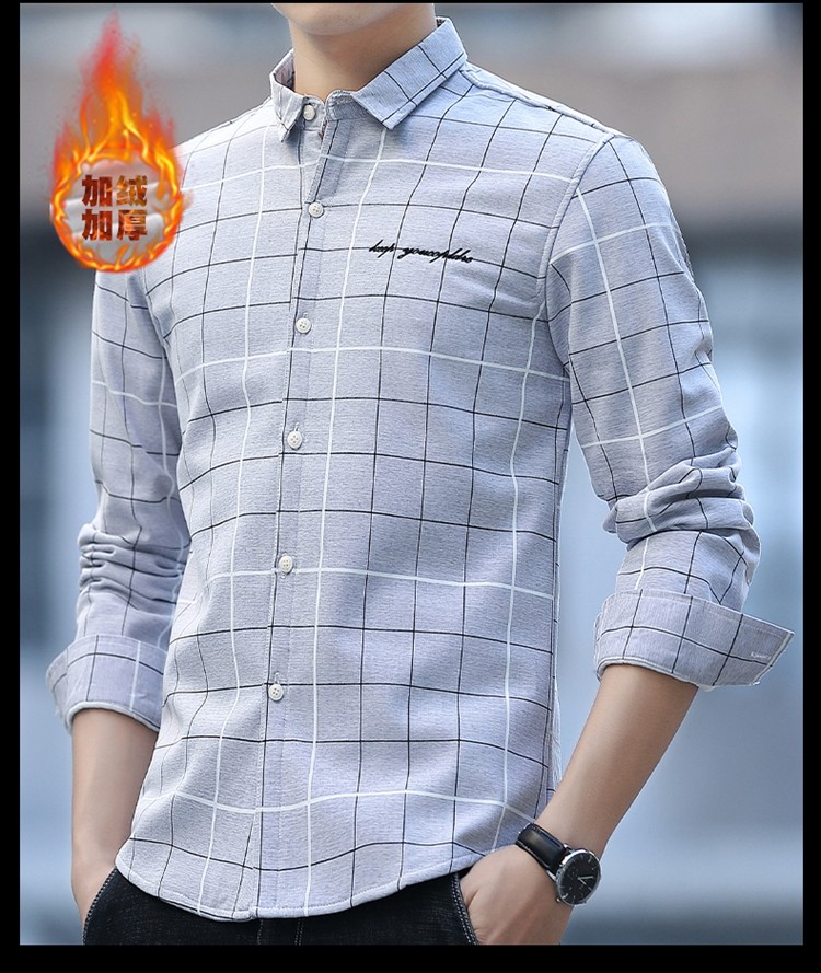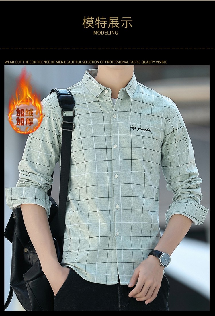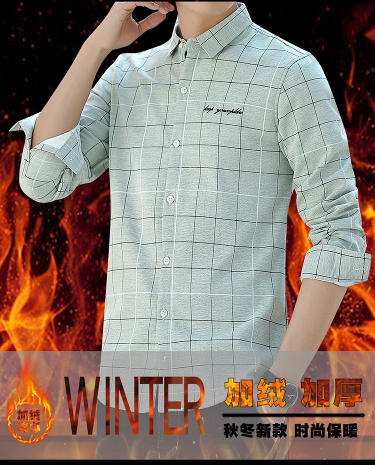 • 冬季加绒衬衫男士长袖加厚保暖潮流衬衣商务免烫印花休闲格子寸衣