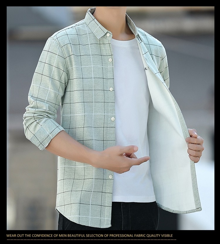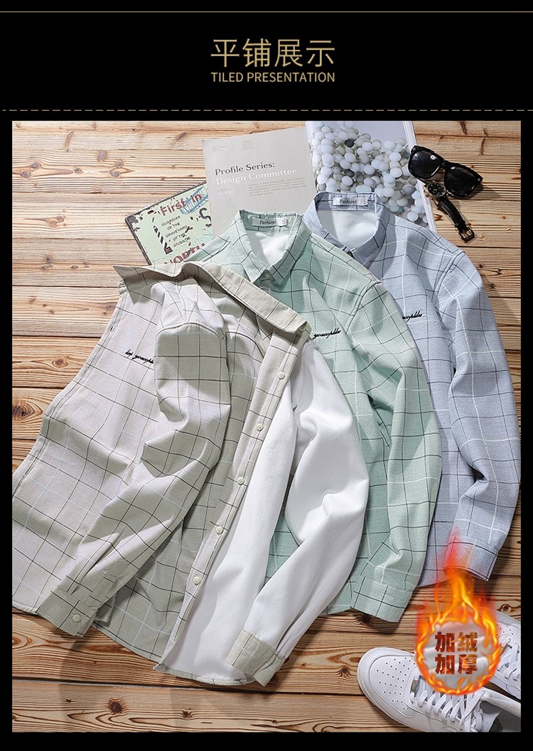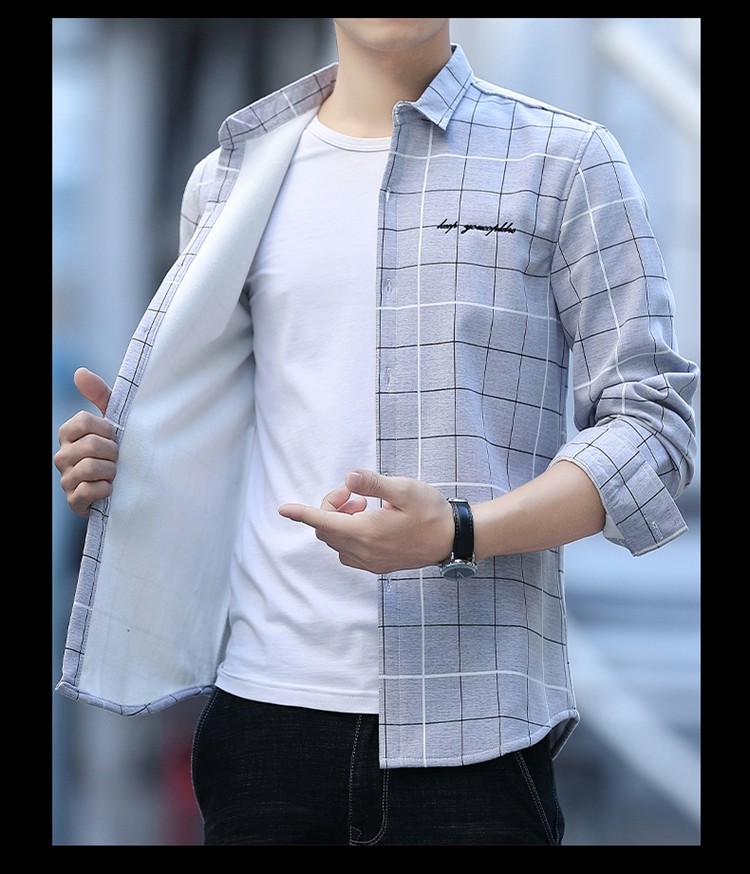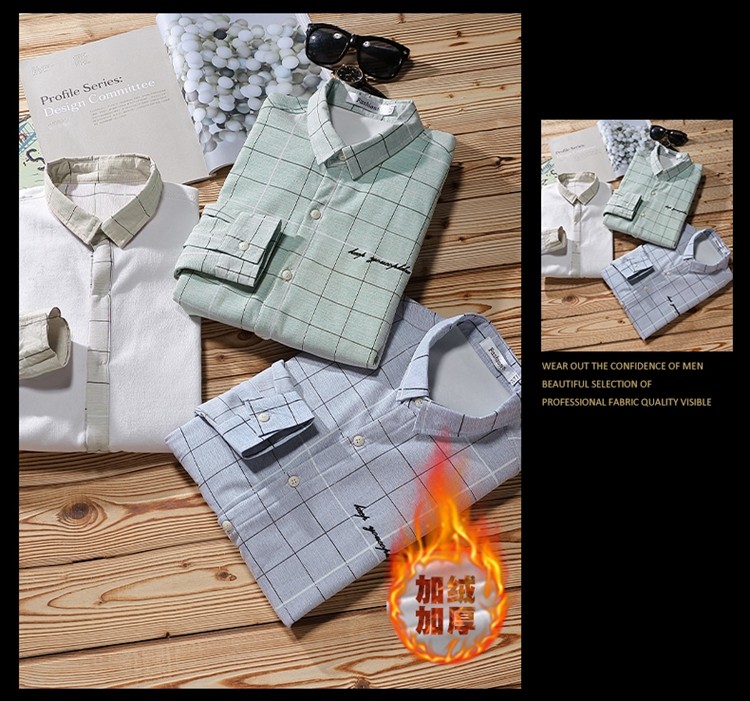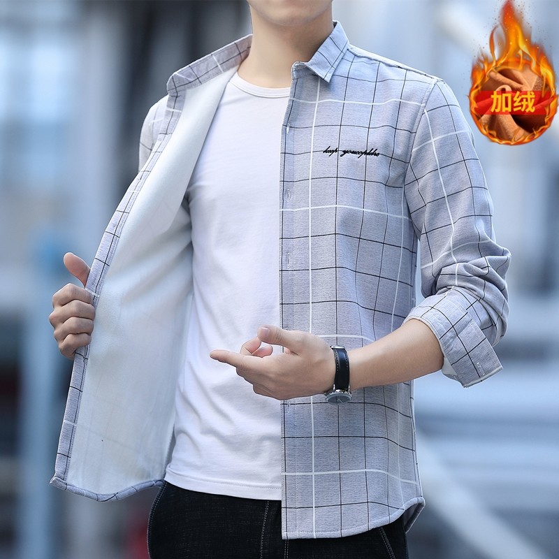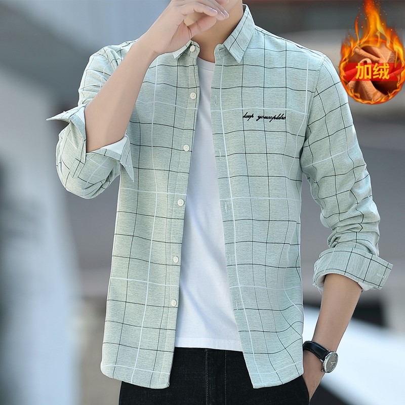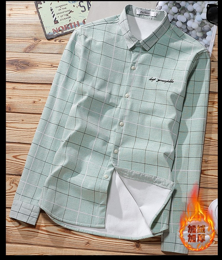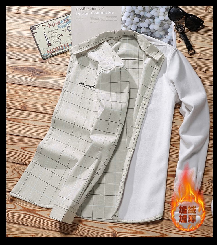 • 冬季加绒衬衫男士长袖加厚保暖潮流衬衣商务免烫印花休闲格子寸衣