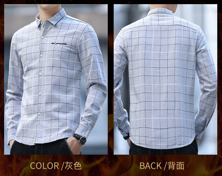 首页 > 时尚男装 > 冬季加绒衬衫男士长袖加厚保暖潮流衬衣商务免烫印花休闲格子寸衣