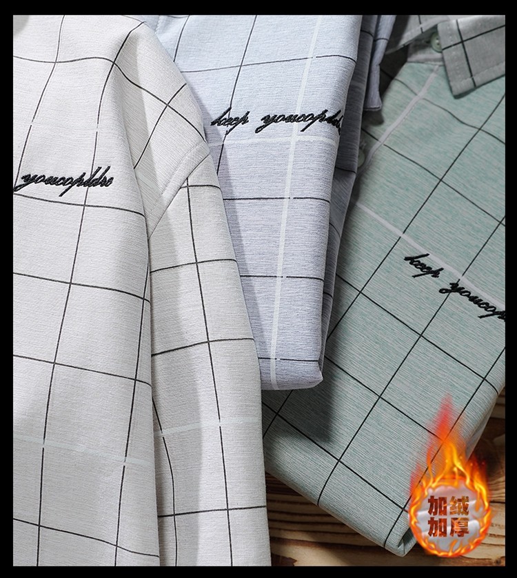 冬季加绒衬衫男士长袖加厚保暖潮流衬衣商务免烫印花休闲格子寸衣