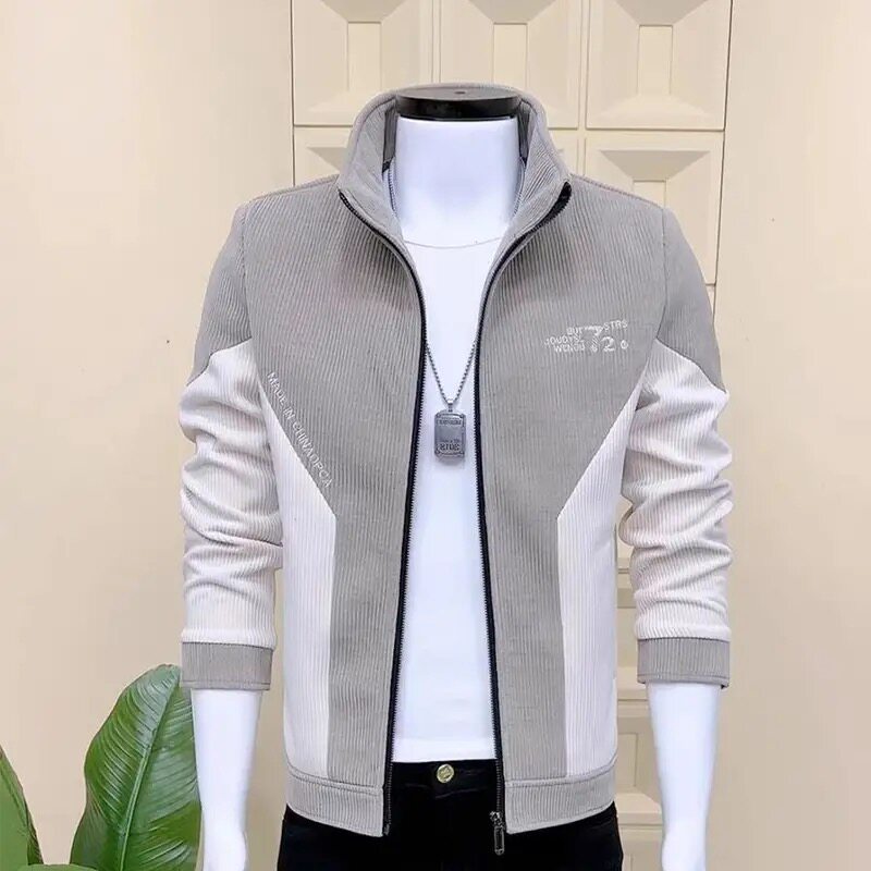 • 男士春秋季衣服新款外套夹克立领休闲拼色潮流高档帅气修身男装