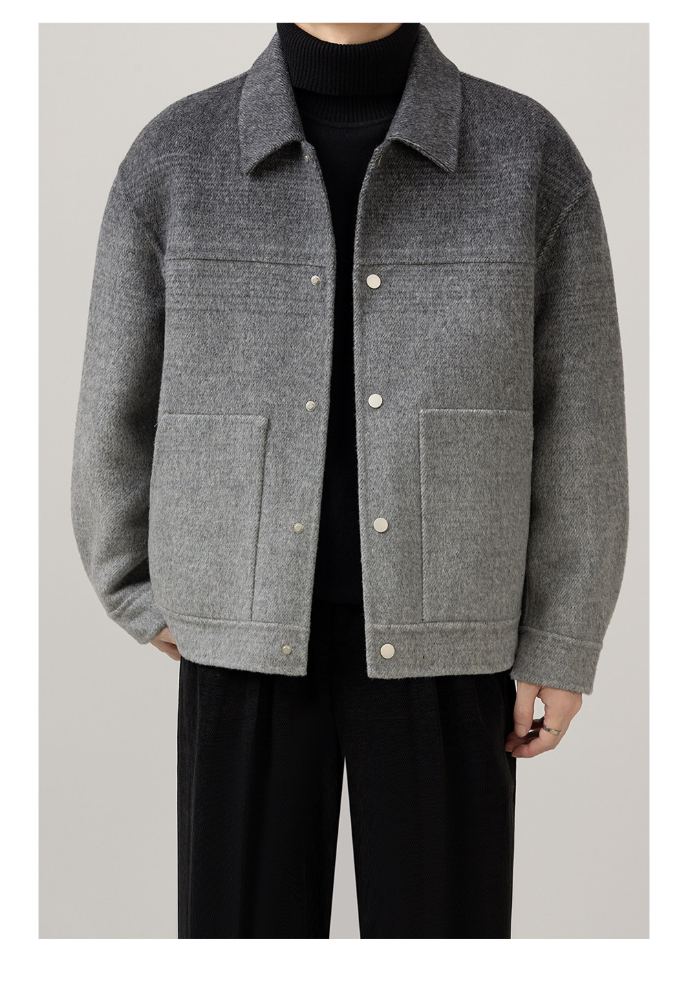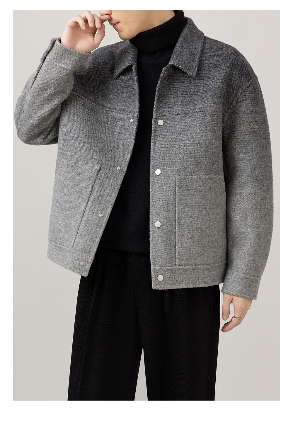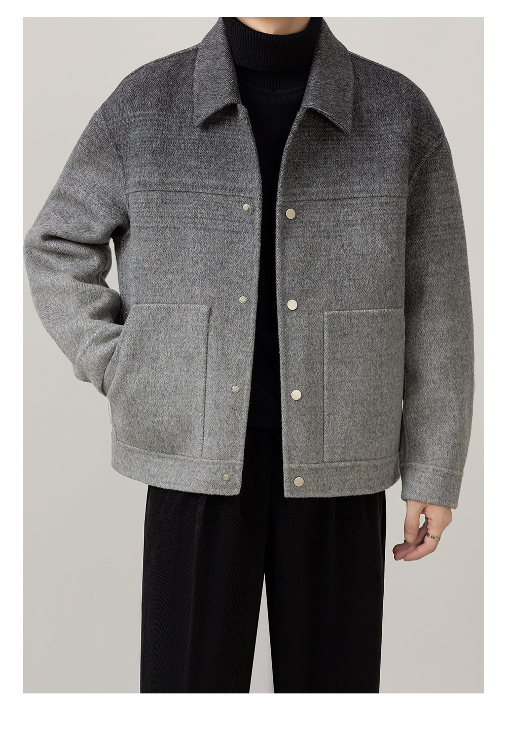 首页 > 时尚男装 > 秋冬渐变高级感新款男装双面羊毛休闲时尚潮流痞帅翻领上衣外套男