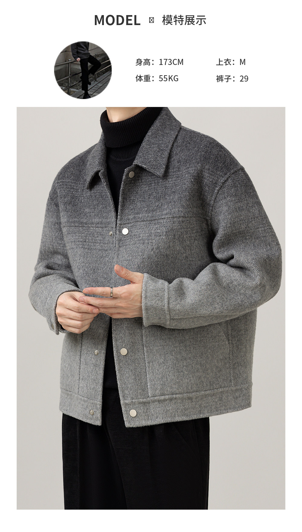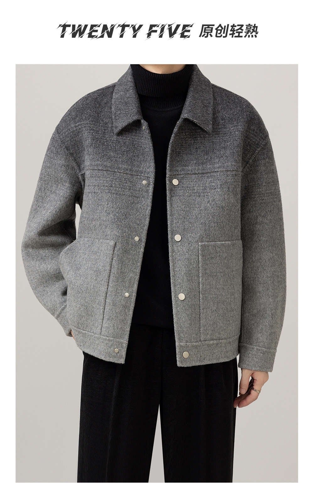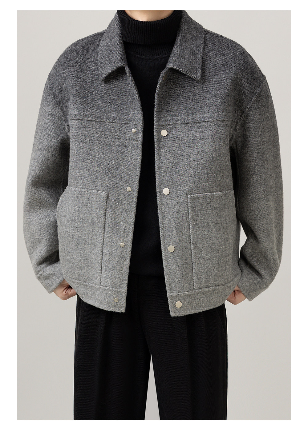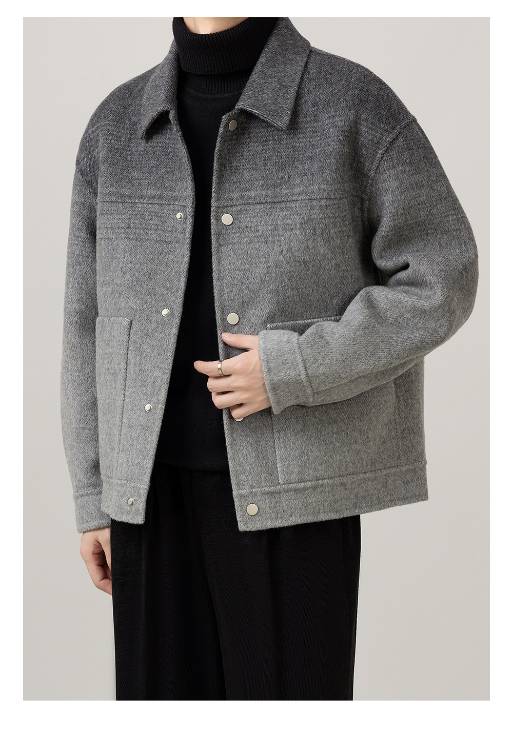首页 > 时尚男装 > 秋冬渐变高级感新款男装双面羊毛休闲时尚潮流痞帅翻领上衣外套男