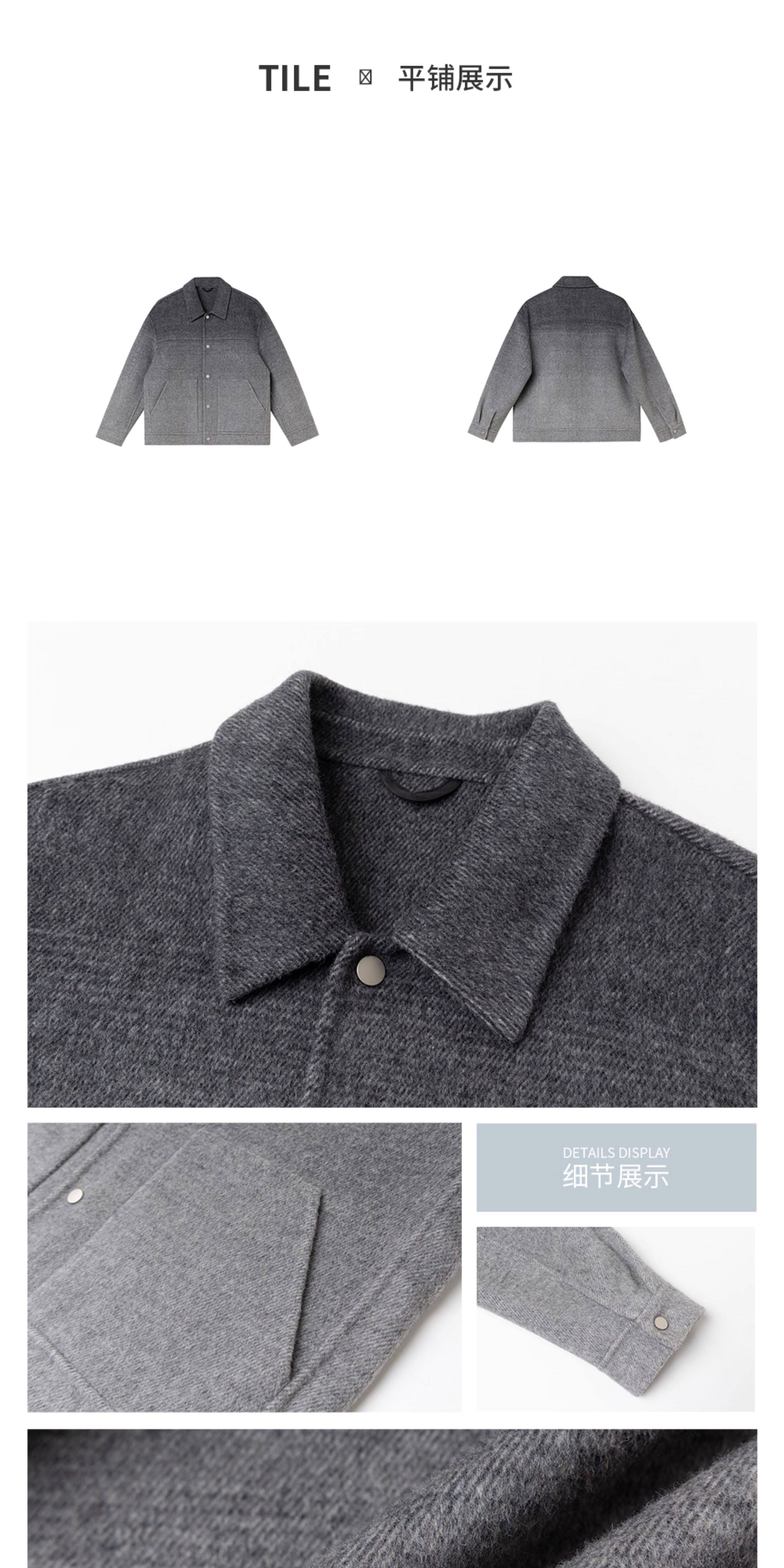 • 秋冬渐变高级感新款男装双面羊毛休闲时尚潮流痞帅翻领上衣外套男