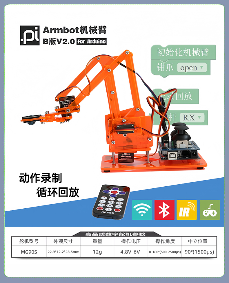 机械臂Arduino开发板学习套件meArm迷你小机械手 米思齐mind套件
