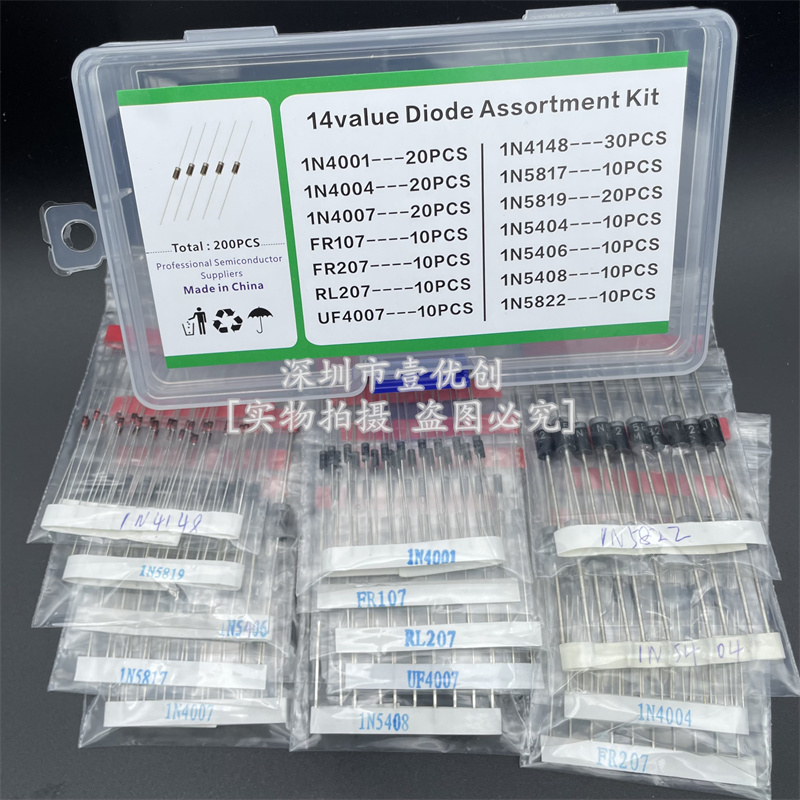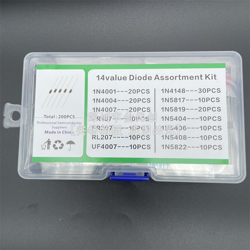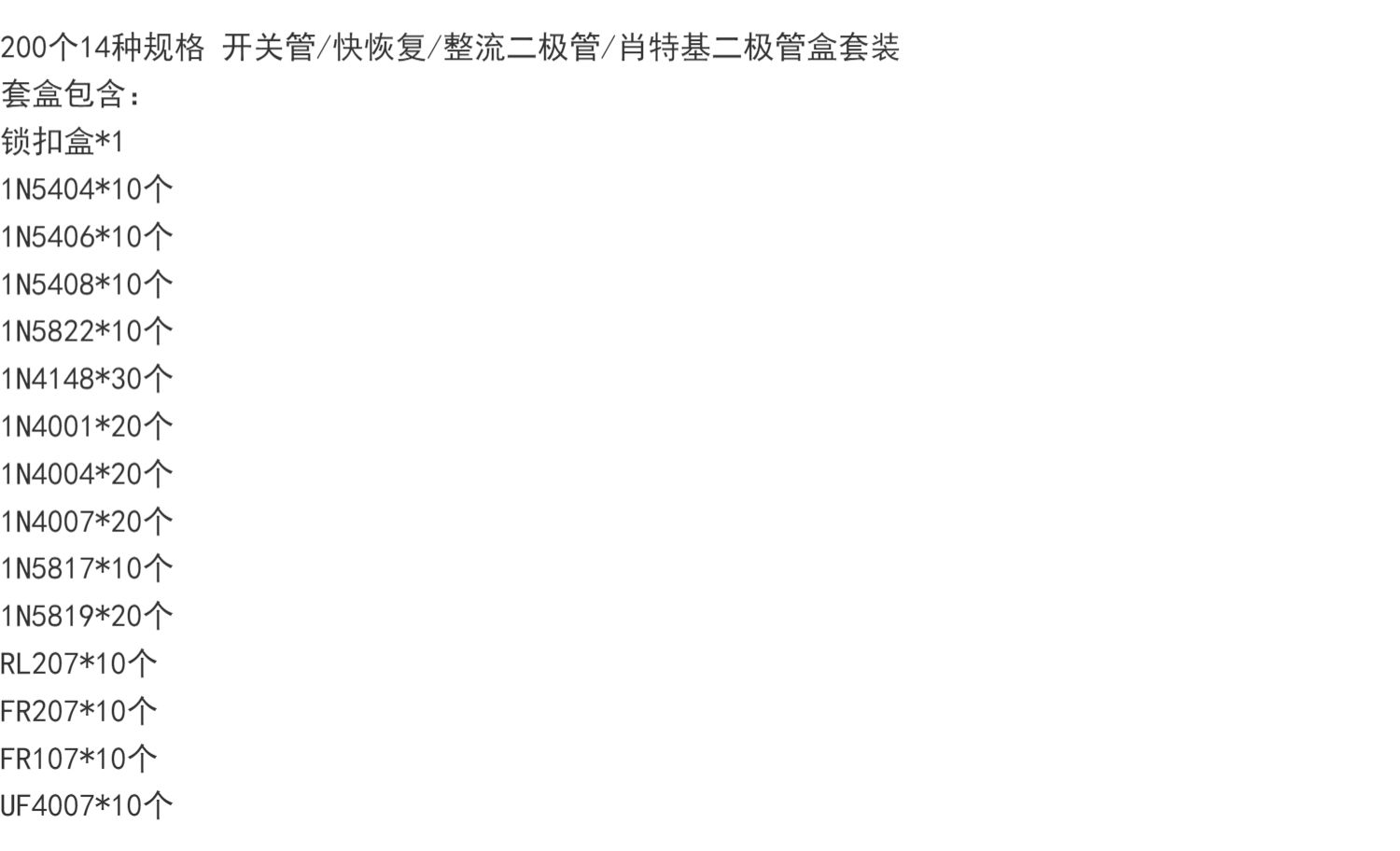 • 200个14种规格开关管/快恢复/整流二极管/肖特基二极管盒套装常用